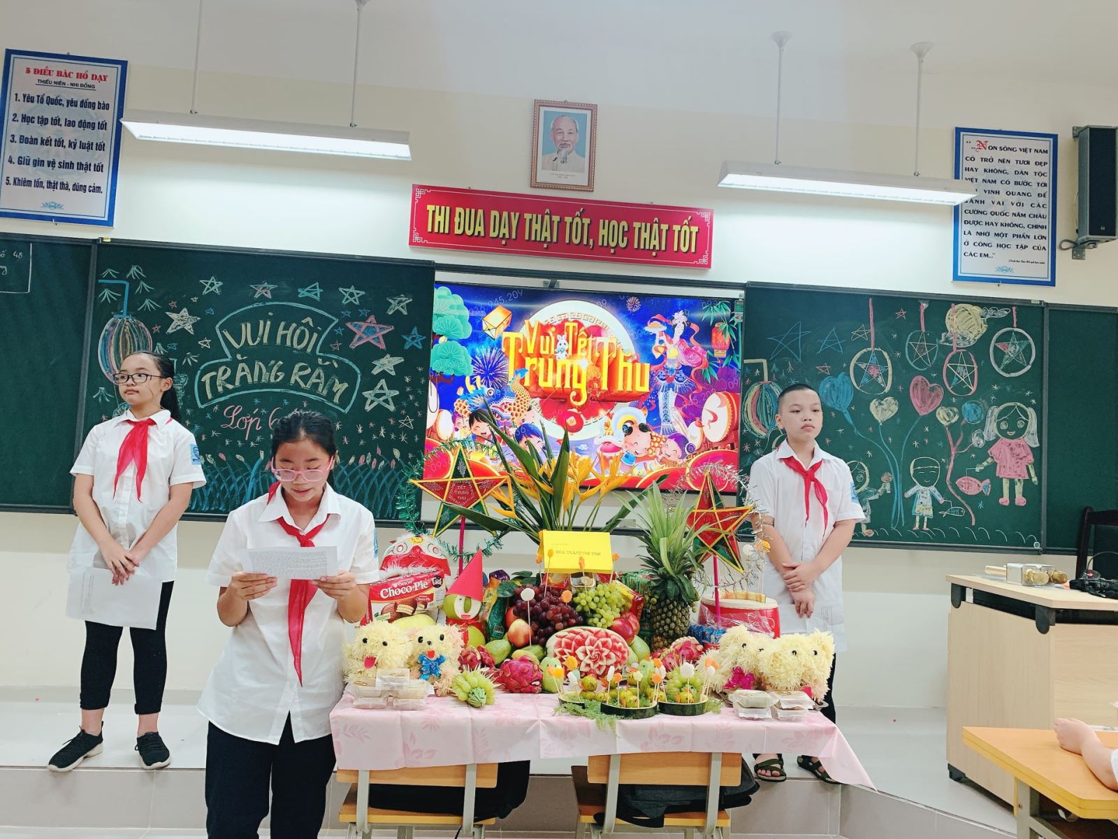 Dù không trực tiếp giao lưu ngoài sân khấu và không có các tiết mục văn nghệ tuy nhiên Hội vui trung thu vẫn diễn ra thật vui vẻ đầm ấm, các chi đội vẫn có những mâm cỗ thật rực rỡ sắc màu.