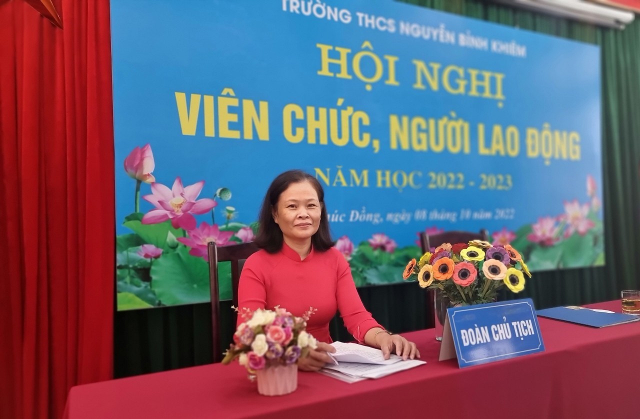 Cô Nguyễn Thị Thu Thủy- Chủ tịch Công đoàn trường THCS Nguyễn Bỉnh Khiêm