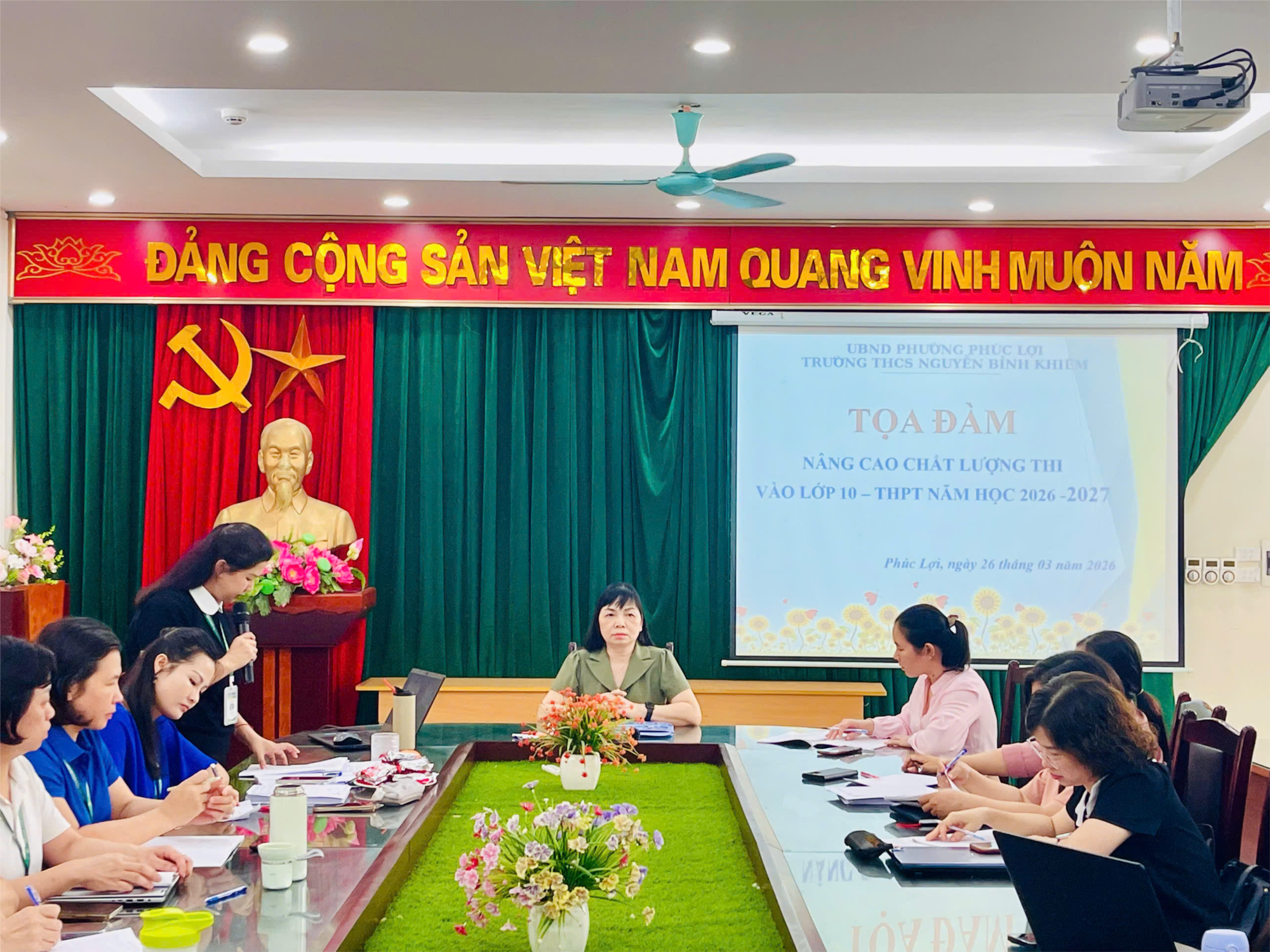 Thực hiện kế hoạch năm học và nhằm nâng cao chất lượng thi tuyển sinh vào lớp 10 THPT, chiều ngày 26/3/2026, Trường THCS Nguyễn Bỉnh Khiêm đã tổ chức buổi tọa đàm với chủ đề “Nâng cao chất lượng thi vào lớp 10 – THPT năm học 2026–2027”.