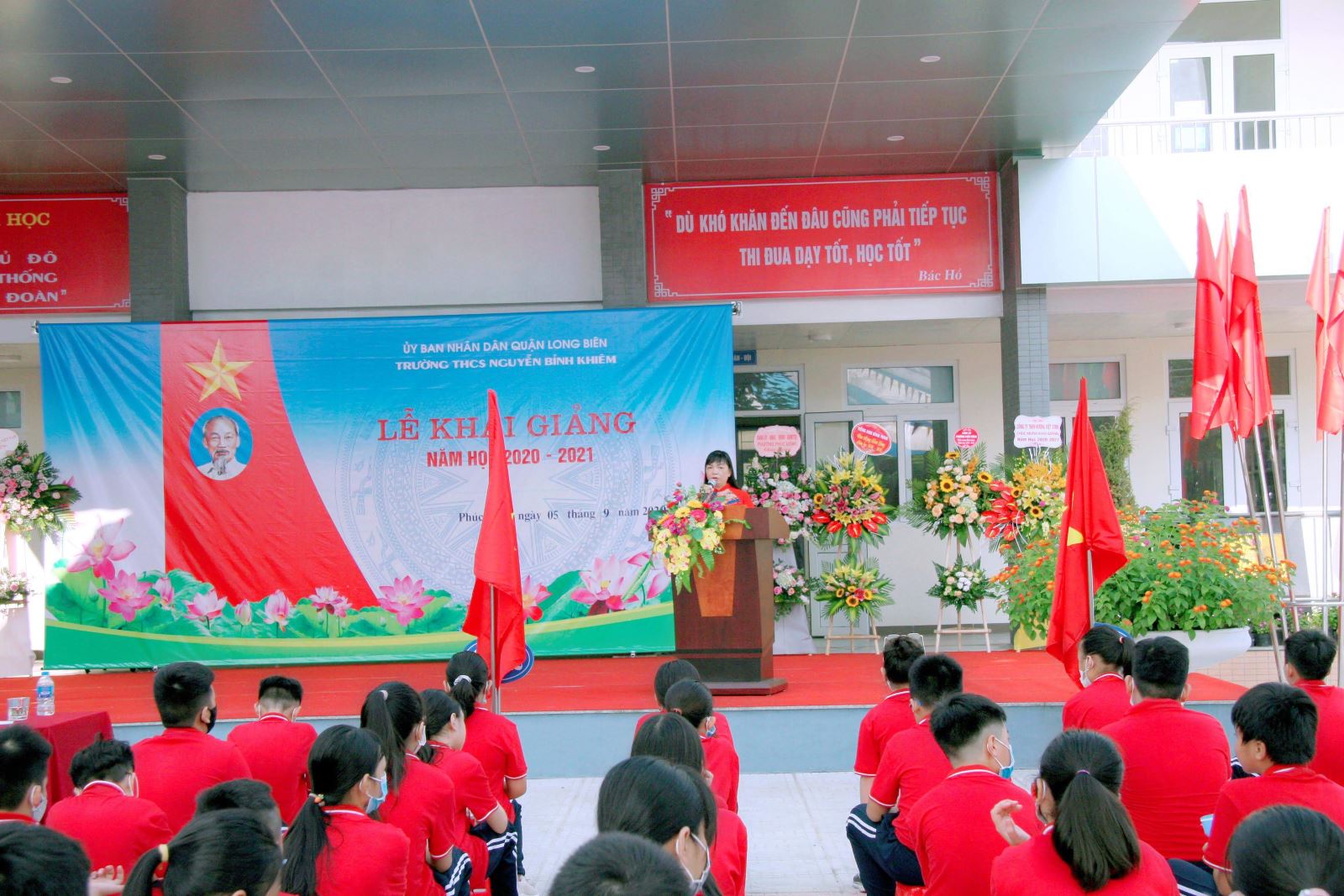 Trong buổi lễ khai giảng năm học 2020 -2021, nhà trường vinh dự được đón đồng chí Phạm Nam Anh, phó Bí thư Quận đoàn, Chủ tịch Hội Liên hiệp thanh niên Việt Nam quận Long Biên đến dự và trao quyết định thành lập Liên đội THCS Nguyễn Bỉnh Khiêm và hoa chúc mừng.