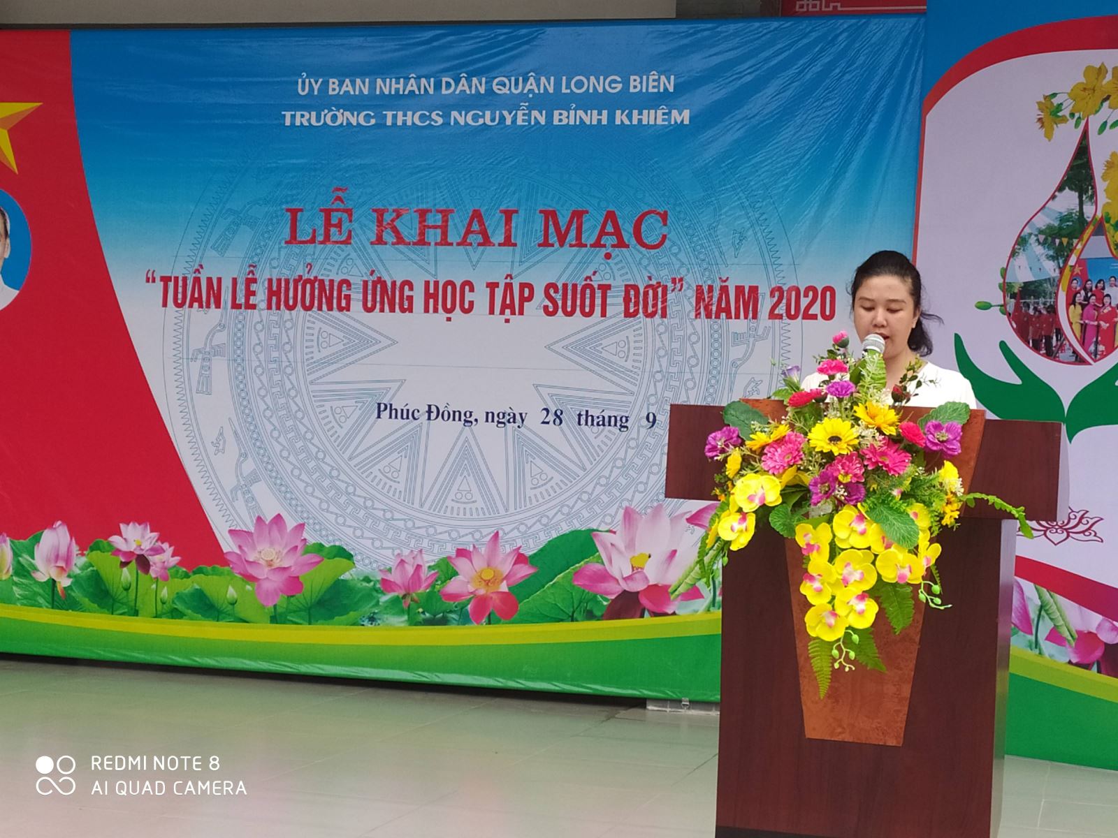 Thực hiện cô !important;ng văn số 3589/BGDĐT-GDTX gửi Chủ tịch Ủy ban nhân dân các tỉnh/thành phố trực thuộc Trung ương về việc tổ chức tổ chức Tuần lễ hưởng ứng học tập suốt đời năm 2020, sáng ngày 28/9/2020, trường THCS Nguyễn Bỉnh Khiêm đã tổ chức lễ khai mạc "Tuần lễ hưởng ứng học tập suốt đời" năm 2020 tại sân trường. Dự buổi lễ có các đồng chí trong BGH, CBGVNV và hơn 400 học sinh trường THCS Nguyễn Bỉnh Khiêm.